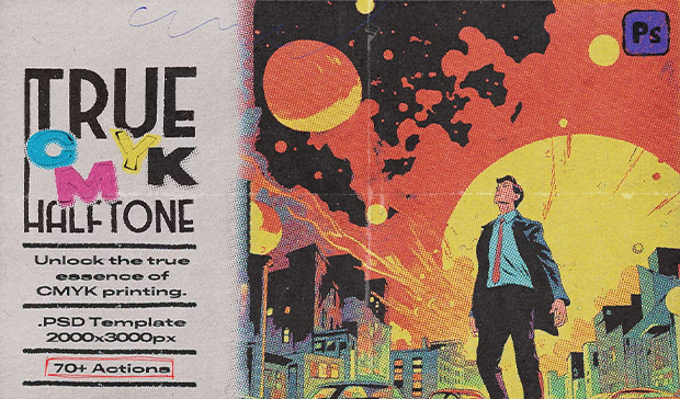 Experience the mesmerizing fusion of art and technology with our True CMYK Halftone Photoshop Template. This meticulously crafted template authentically imitates CMYK printing, offering stunning results. Discover versatile actions suitable for beginners and advanced users, allowing complete customization of dot size, brightness, contrast, and more. With smart objects and filters, unleash your creativity and witness the remarkable accuracy of Colorize Dots, while seamlessly integrating captivating backgrounds using Colorize Background actions. Transcend the boundaries of imagination and explore the harmony of art and technology.
