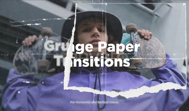 Vertical and horizontal MOGRT Grunge Paper Transitions are fast modern transitions for music videos, extreme sports or urban videos with multiple customization options.